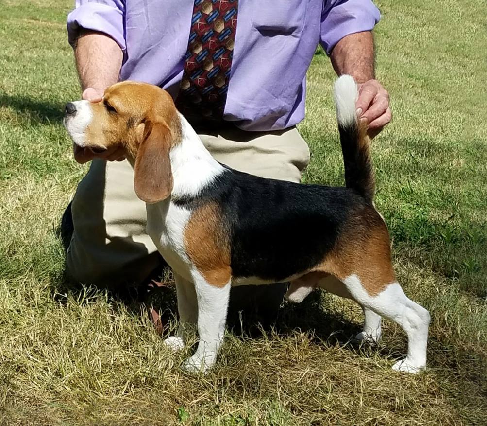 A quality 13" xceptionally showy bitch. She earned multiple Awards of Merit at the National Beagle Club (three or four) along with a Select placement. Though only shown sparingly, she also captured several Group Firsts. She is the dam of Gilbert.